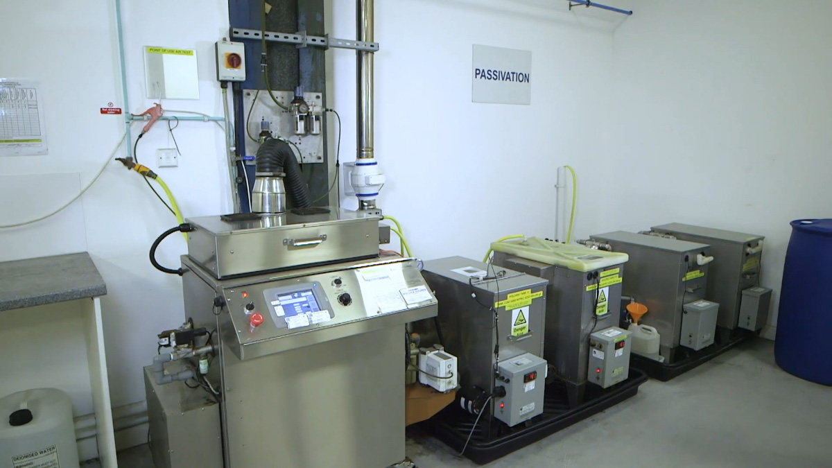 Other innovative plant functionality includes an ultrasonic passivation facility and a rotary option where parts can be rotated through the solution, thus filling air gaps in more complex and tubular-type components for example.